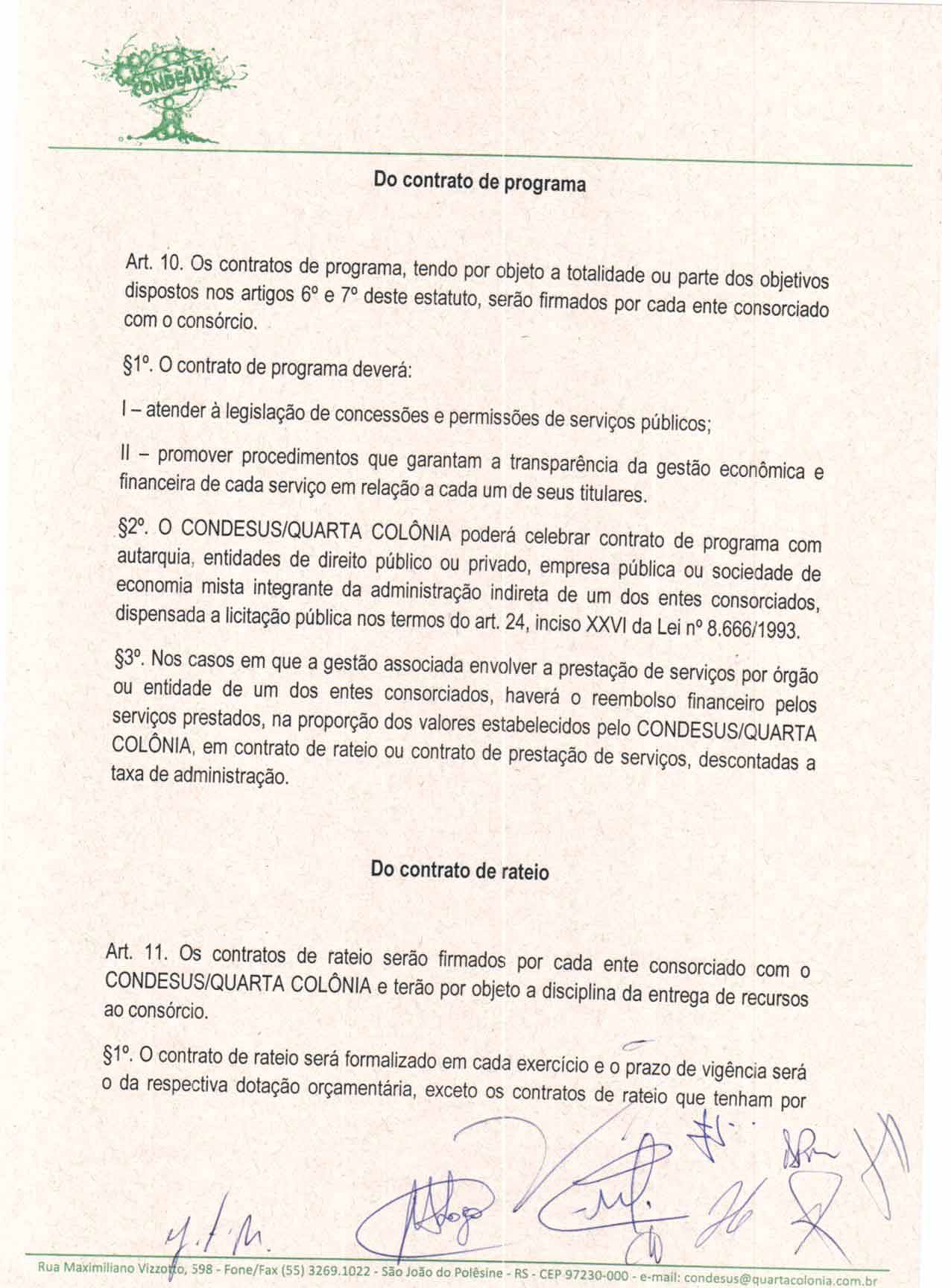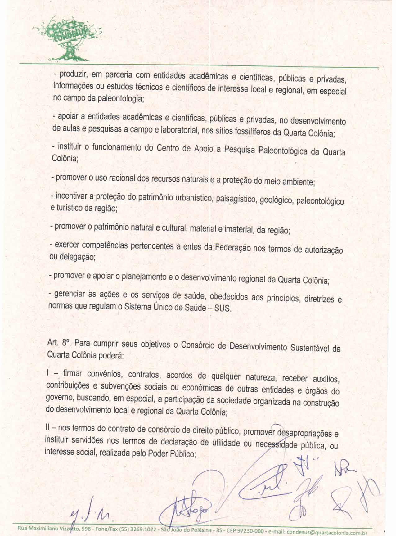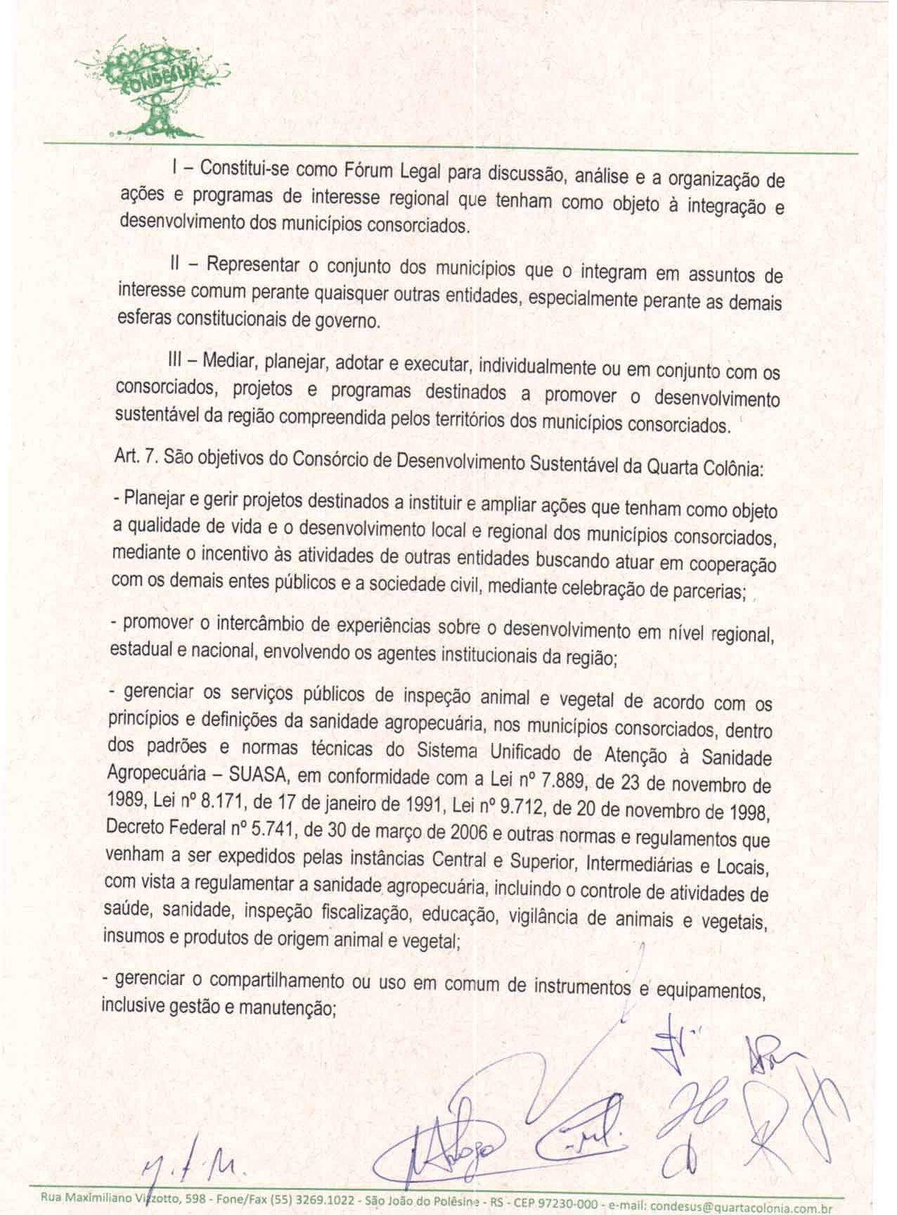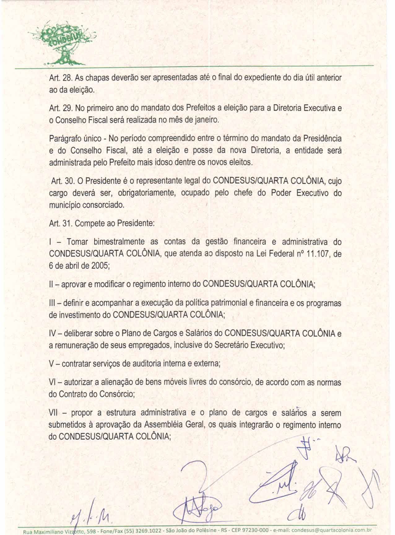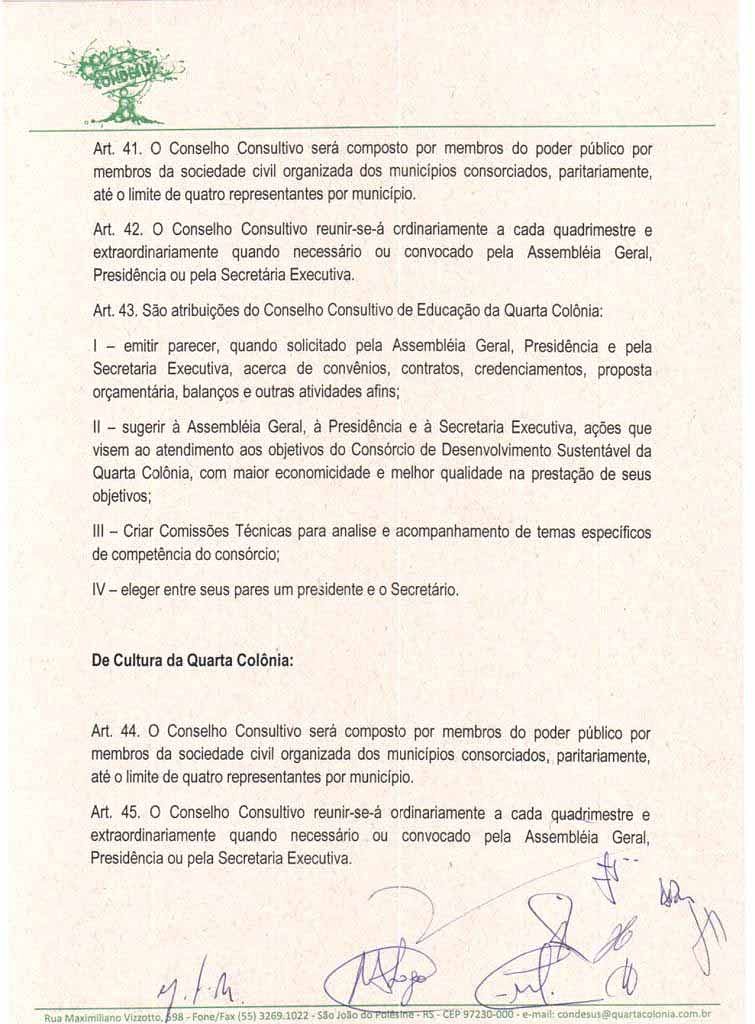 O Estatuto do CONDESUS QUARTA COLÔNIA, a ser aprovado por sua Assembléia Geral, disporá sobre sua estrutura, funcionamento, atribuições e quadro de pessoal.